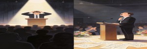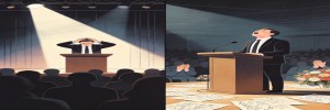 剧场里灯光打在你身上,要演讲或表演,但脑子一片空白。台下几百双眼睛盯着。